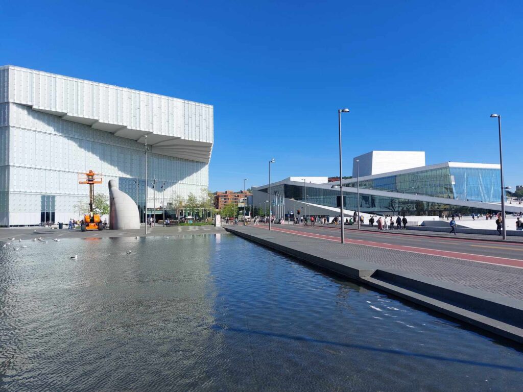 - Opera w Oslo: Nowoczesna architektura i możliwość spaceru po dachu z pięknym widokiem na fiord.