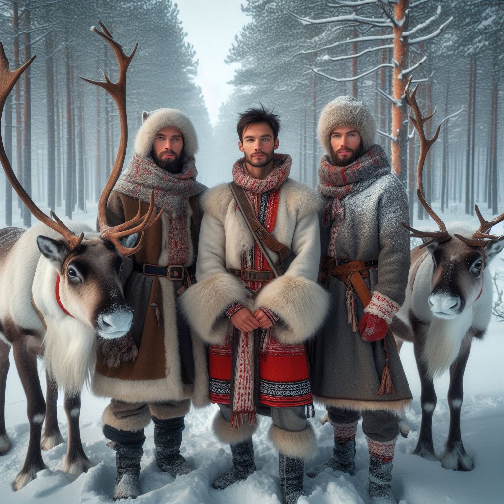 - Ubrania: Tradycyjne ubrania Saamów są wykonane ze skóry reniferów i wełny. Są ciepłe, wytrzymałe i ozdobione tradycyjnymi wzorami.
